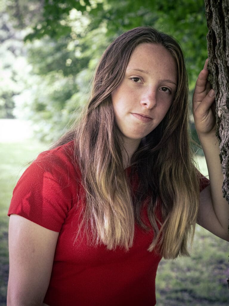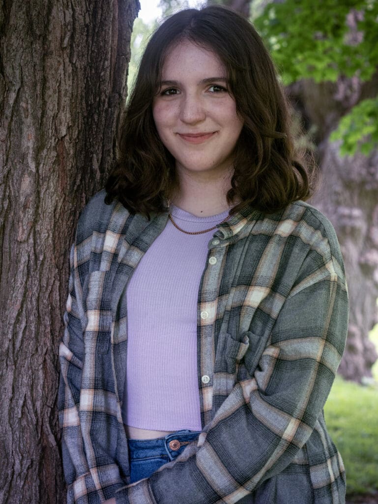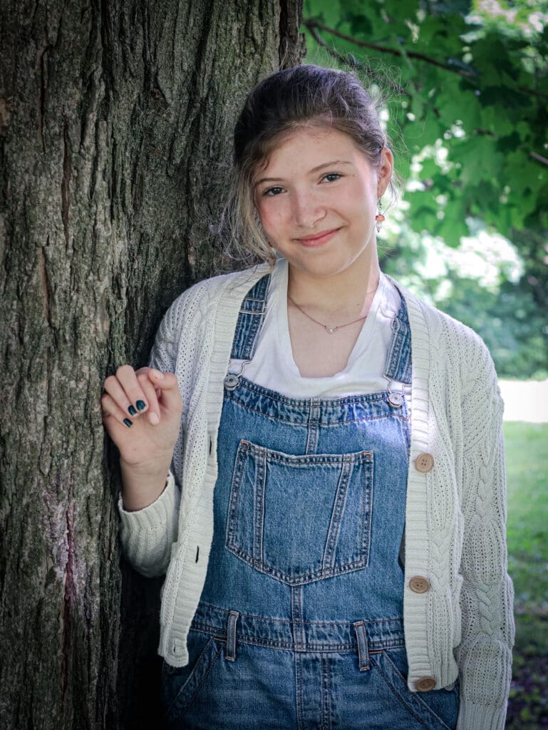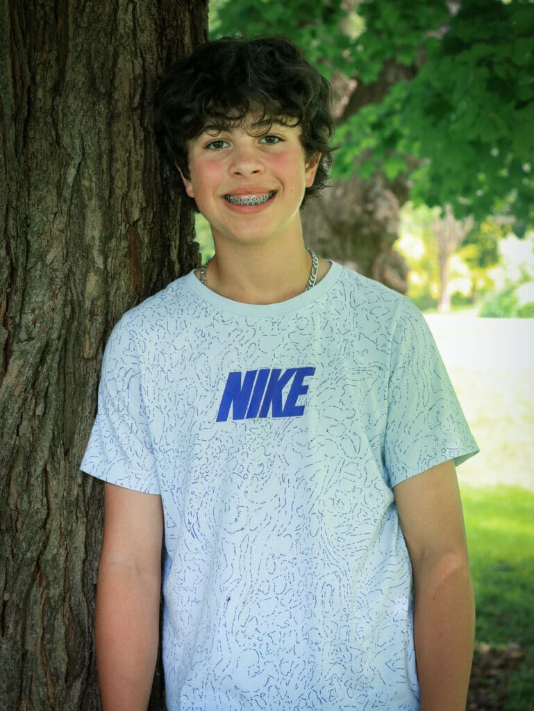 Neave joined the class in Grade Two. Her first memory was on the first day when she sat down and looked around at all her classmates. She was scared and thought that many people were scared. But when she saw Lola, she knew she wanted to be friends with her. Neave’s favourite Main Lesson blocks were Anatomy, Physics, Astronomy, and the Grade Eight play. Her favourite trips were the Pinery trips and the Bancroft trip, which she feels brought the class together. There are many fond memories of her time with her class, but Neave specifically remembers the funny chalkboard drawings, the German pancake story, Freda saying, “When I get free, you won’t see me,” and Mr. Lewis’s jokes. Outside of school, Neave plays guitar, bass, and piano. She likes sports, doing art, and cooking. For her Grade Eight project, she studied and experimented with fermentation. In September, Neave will attend Beal. She is excited for a new, fun environment with new people and experiences (“even if it’s scary”). Neave would like to say the following about her time at LWS: “Even though I did leave for one year, this class always felt like home. I’ve grown so much (friends, skills, personality). At first, I was quite shy and would never raise my hand, but Mrs Jorgensen would always call on me to become more expressive and extroverted. She’s taught me so much; she has taught me to be stern and gentle, focussed but also able to relax. I’m so thankful for this year. I’ve been able to re-connect with friendships and make new friends as well.”